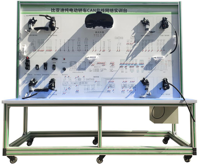 新能源比亞迪車載網(wǎng)絡(luò)實訓(xùn)臺采用比亞迪e5 電動汽車CAN-BUS系統(tǒng)等真實器件制作的實驗實訓(xùn)臺架,可電動汽車CAN-BUS系統(tǒng)相關(guān)的實驗實訓(xùn)內(nèi)容。適合于各類院校對純電動車CAN總線網(wǎng)絡(luò)系統(tǒng)理論和維修實訓(xùn)的拆裝與維護、結(jié)構(gòu)與原理認(rèn)知、系統(tǒng)操作、功能動態(tài)演示、故障檢測與診斷教學(xué)需要。