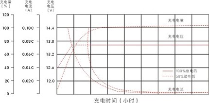 鉛酸蓄電池要求采用限流恒壓的充電方法進(jìn)行充電。在環(huán)境度為25℃的條件下,最佳的浮充電壓為13.6±0.1V 臺(tái)X臺(tái)數(shù),充電開(kāi)始時(shí)的電流應(yīng)限制在0.25C10A的范圍內(nèi)。
