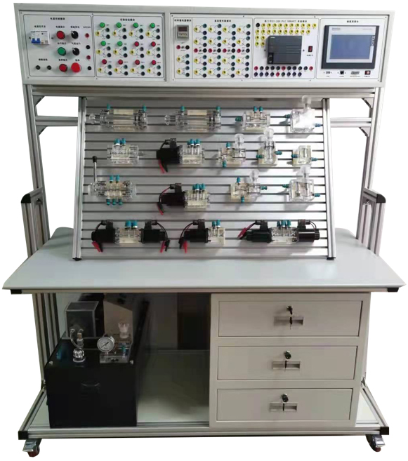 (3)配有控制模塊:電源模塊,PLC控制模塊,繼電器控制模塊,時間繼電器控制模塊、控制按鈕模塊,液壓元件獨(dú)立模塊等。