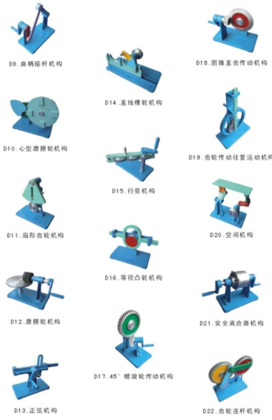 機械機構基礎實驗臺、機構創(chuàng)新組合實驗臺、動平衡原理實驗臺、軸系結構設計實驗箱、機構搭接測試實驗臺、齒輪范成