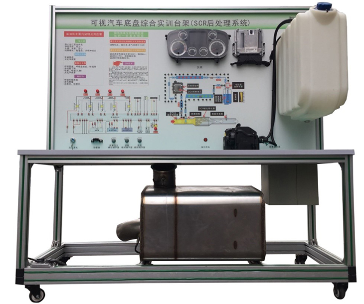 SCR后處理系統(tǒng)實(shí)驗(yàn)設(shè)備底座框架采用高強(qiáng)度鋁合金型材拼接而成,平臺(tái)面板采用4mm厚耐腐蝕、耐創(chuàng)擊、耐污染、防火、防潮的高級(jí)鋁塑板,表面經(jīng)特殊工藝噴涂底漆處理;面板打印有永不褪色的彩色電路圖,表面噴涂光油;學(xué)生可直觀對(duì)照電路圖,認(rèn)識(shí)和分析控制系統(tǒng)的工作原理;實(shí)訓(xùn)臺(tái)面板上安裝有檢測(cè)端子、可直接在面板上檢測(cè)電信號(hào),如電阻、電壓、電流等。