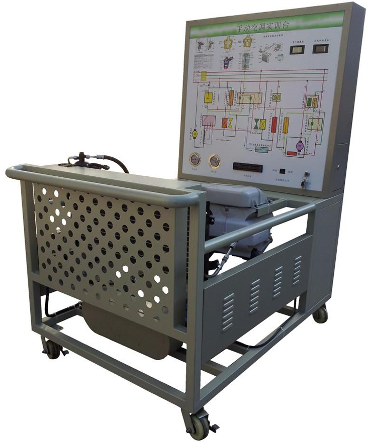 2.由三相電機(jī)做為動(dòng)力源,帶動(dòng)空調(diào)壓縮機(jī)工作。操作空調(diào)控制面板,可真實(shí)演示汽車單風(fēng)口空調(diào)系統(tǒng)的工作過(guò)程以及工作原理。