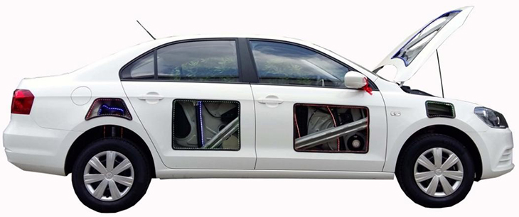 (1)整車電控系統(tǒng)實訓臺用于汽車電控系統(tǒng)的教學與實訓,包含汽車電控系統(tǒng)六大部分:發(fā)動機電控系統(tǒng)、自動變速器、ABS系統(tǒng)、SRS系統(tǒng)、音響系統(tǒng)、空調系統(tǒng),燈光與車身電器系統(tǒng);