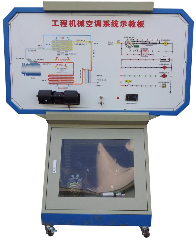 2.由三相電機(jī)做為動力源,帶動空調(diào)壓縮機(jī)工作。操作空調(diào)控制面板,可真實演示車輛空調(diào)系統(tǒng)的工作過程以及工作原理。