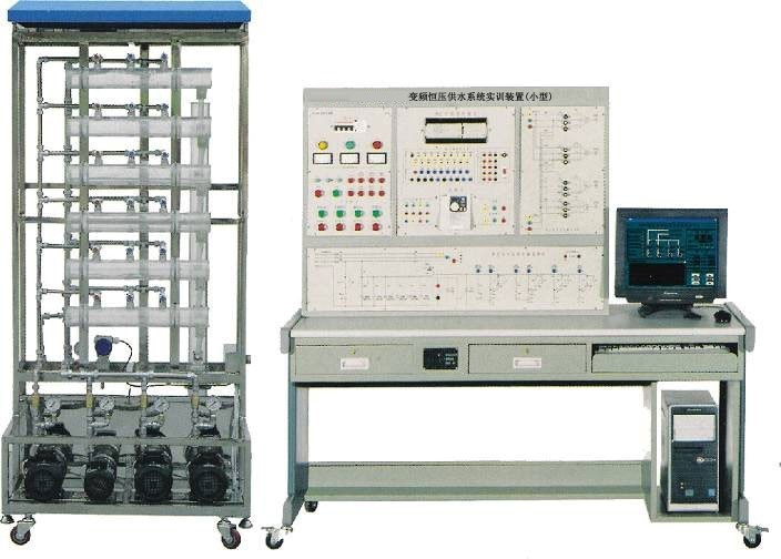 變頻恒壓供水系統(tǒng)實訓(xùn)裝置,集PLC、變頻調(diào)速、過程控制、工程組態(tài)技術(shù)于一體。它由六層住宅消防、生活供水系統(tǒng)(實物模型),控制平臺兩大部分組成,包含了可編程控制器、變頻器、變頻磁力驅(qū)動泵、休眠泵、消防泵、壓力變送器、壓力儀表、輸水管道、消防栓、家用水龍頭、蓄水池等工程設(shè)備。控制平臺采用PLC+變頻器的開放式控制結(jié)構(gòu),可以完成多種模式下的樓層恒壓供水實訓(xùn)實訓(xùn),為教學(xué)研究變頻恒壓供水技術(shù)提供一個開放的操作平臺。它是一款適合于大學(xué)及中、高職院校電氣自動化、樓宇自動化、建筑電氣、智能建筑等專業(yè)的綜合型技能實訓(xùn)考核設(shè)備。